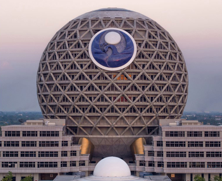 worden er 10.000 mobiele toiletten neergezet en er zijn 6 parkeerdeks voor toestromende bezoekers. Fysieke ergernis en ongemak bestaat niet in Dhammakaya. Die perfectie kost wel wat overigens. Bij elk bezoek staat er een persvoorlichter klaar. Het is verboden om het heiligdom te fotograferen zonder dat je het rood gele logo in beeld neemt of zonder je handen voor je borst te vouwen.